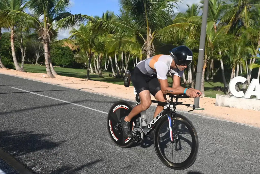 La competición comienza con un segmento de natación de 1900 metros en las aguas turquesas y cristalinas de la playa de Cap Cana. Los participantes recorren en un circuito que puede presentar desafíos como corrientes moderadas y visibilidad variable, dependiendo del clima del día. Sin embargo, la belleza del entorno hace que este sea un inicio espectacular y relativamente accesible para los triatletas.